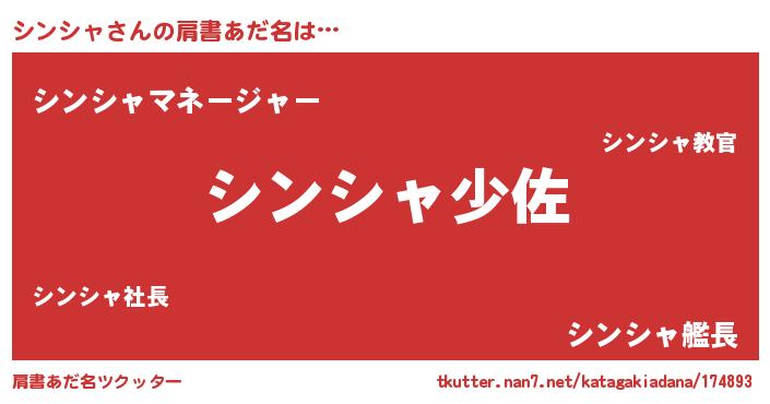 | 男性向けラノベタイトル風あだ名 | 『転生したらシンシャだった件』 |