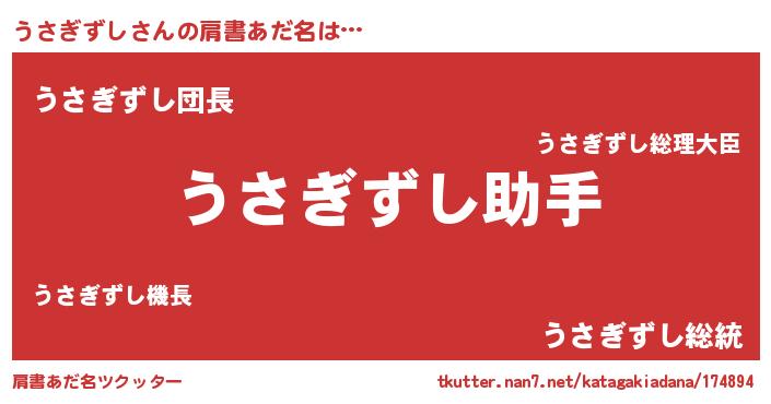 | ヒーロー風カッコイイあだ名 | 『天空の使者うさぎずし』『黄金騎士ウサ』 |