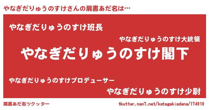 | 意味不明あだ名 | 『自称やなぎだりゅうのすけ』 |