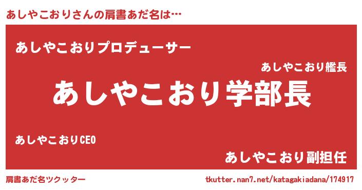 | 男性向けラノベタイトル風あだ名 | 『ノーゲーム・ノーアシヤコオリ』 |