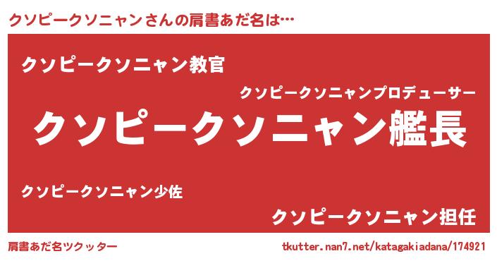 | 意味不明あだ名 | 『住所不定無職クソピークソニャン(62歳)』 |