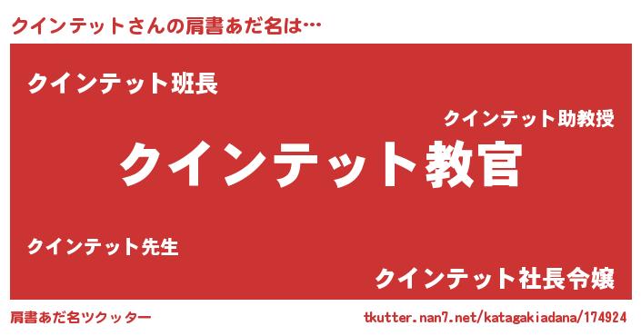 | 女子向けラノベタイトル風あだ名 | 『クインテットが死なない童話 林檎のクインテットの診療簿』 |