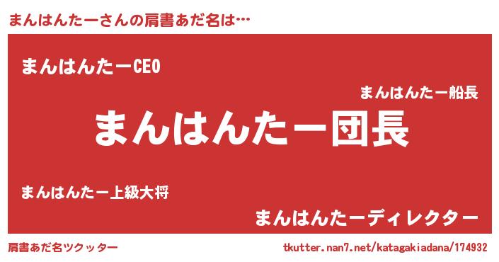 | 意味不明あだ名 | 『とにかく怪しいまんはんたー』 |