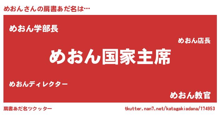 | 意味不明あだ名 | 『めおんフォーエバー』『ペロリンめおん』 |