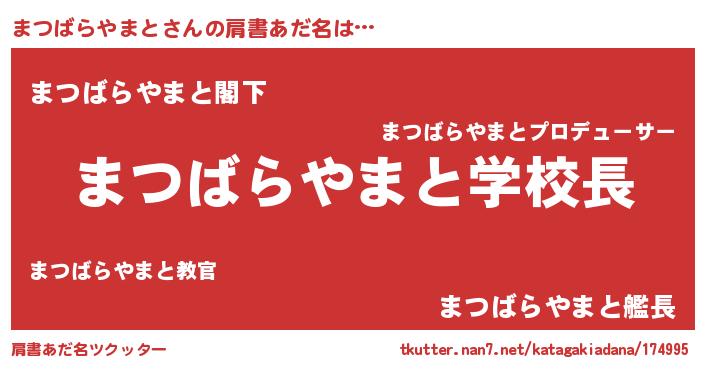 | 男性向けラノベタイトル風あだ名 | 『ノーゲーム・ノーマツバラヤマト』 |