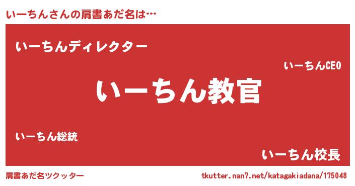 | 男性向けラノベタイトル風あだ名 | 『魔弾の王といーちん』『いーちんの憂鬱』 |