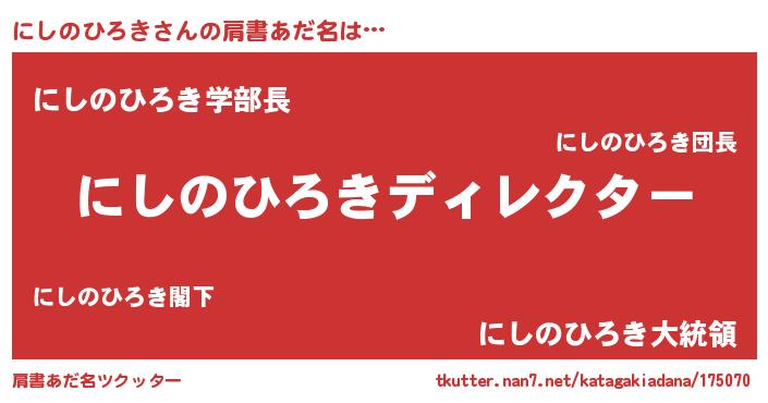 | 男性向けラノベタイトル風あだ名 | 『はたらくにしのひろきさま!』 |