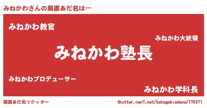 | 意味不明あだ名 | 『とにかく怪しいみねかわ』 |
