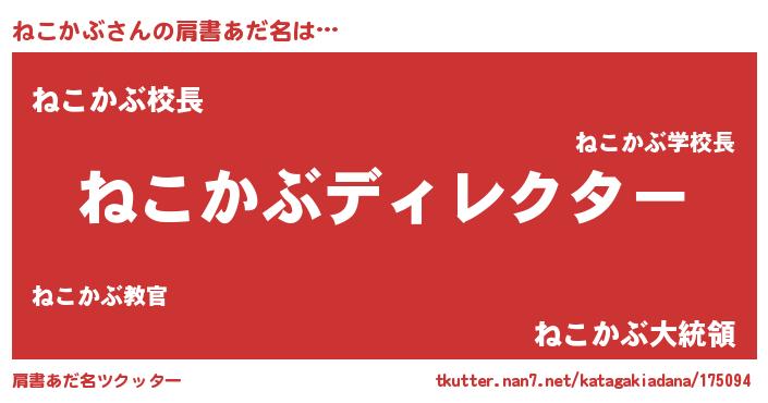 | ヒーロー風カッコイイあだ名 | 『ネオネコカブ』『ウルトラねこかぶマン』 |