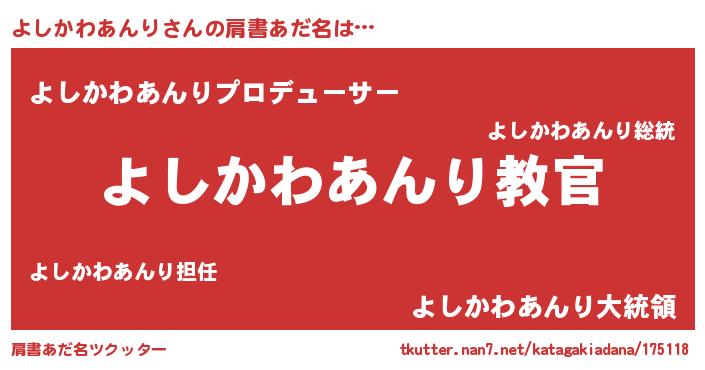 | 意味不明あだ名 | 『住所不定無職よしかわあんり(47歳)』 |