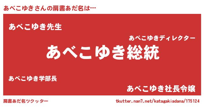 | 男性向けラノベタイトル風あだ名 | 『Re:あべこゆきから始める異世界生活』 |