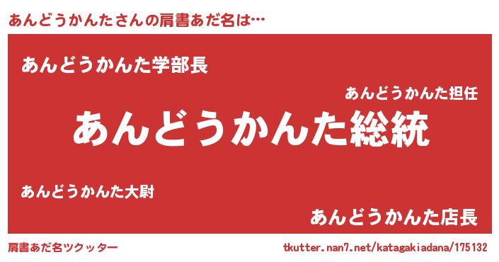 | 男性向けラノベタイトル風あだ名 | 『Re:あんどうかんたから始める異世界生活』 |