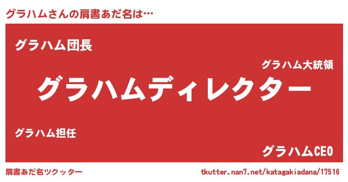 | 意味不明あだ名 | 『とにかく怪しいグラハム』 |