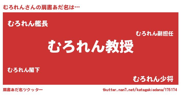 | 男性向けラノベタイトル風あだ名 | 『おまえをオタクにしてやるから、俺をむろれんにしてくれ! 』 |