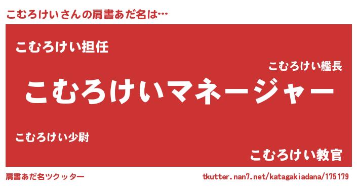 | 意味不明あだ名 | 『永久保存こむろけい』『自称こむろけい』 |