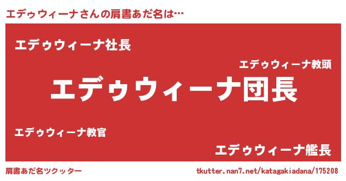 | 男性向けラノベタイトル風あだ名 | 『ダンジョンにエデゥウィーナを求めるのは間違っているだろうか』 |