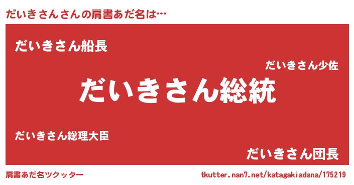 | 意味不明あだ名 | 『自称だいきさん』『永久保存だいきさん』 |