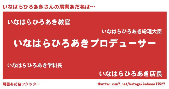 | 男性向けラノベタイトル風あだ名 | 『はたらくいなはらひろあきさま!』 |