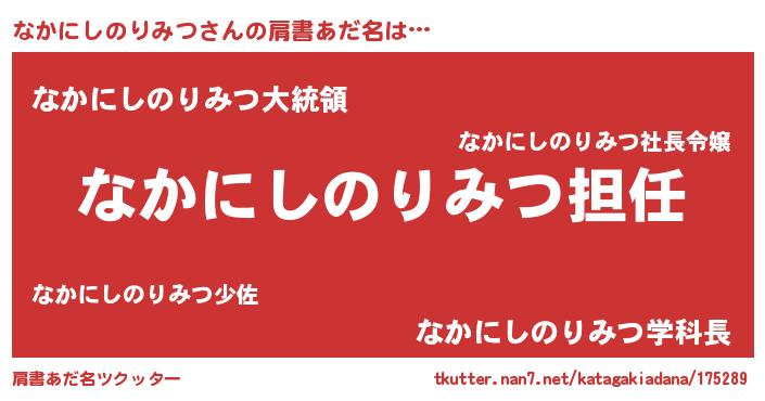 | 男性向けラノベタイトル風あだ名 | 『なかにしのりみつという概念が存在しない退屈な世界 』 |