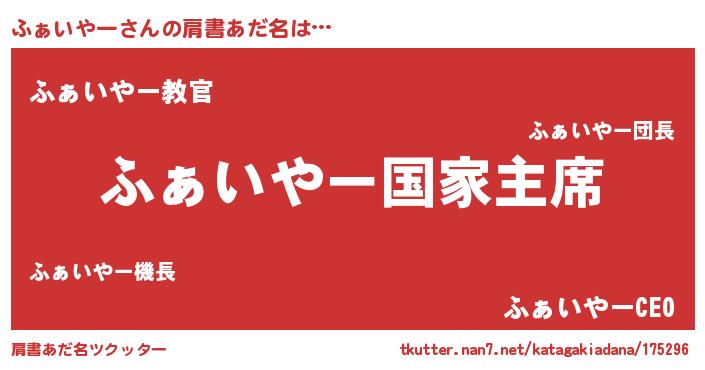 | ポケモン風あだ名 | 『ファイダネ』『フーァイ』 |