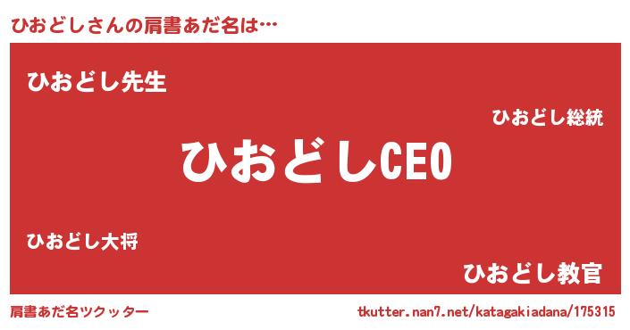 | ポケモン風あだ名 | 『ヒオチュウ』『ゼニヒオ』 |