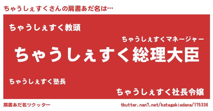 | 女子向けラノベタイトル風あだ名 | 『ちゃうしぇすくの婚約者』 |
