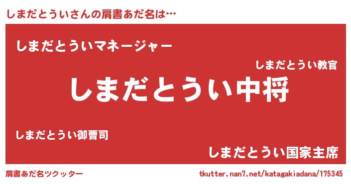 | 男性向けラノベタイトル風あだ名 | 『シマダトウイスレイヤー』 |