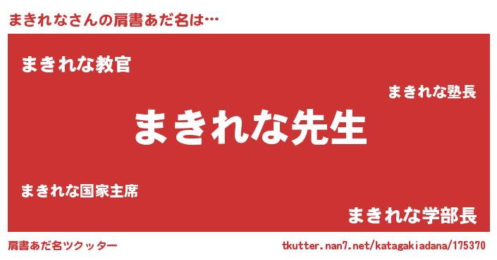 | 男性向けラノベタイトル風あだ名 | 『まきれなという概念が存在しない退屈な世界 』 |