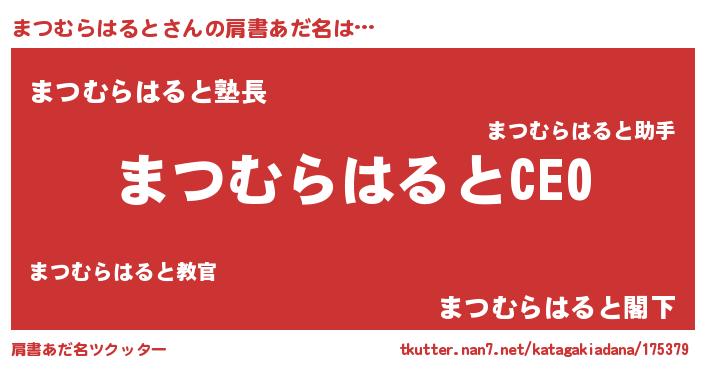 | 女子向けラノベタイトル風あだ名 | 『誰かこのまつむらはるとを説明してください! ~契約から始まるウェディング~』 |