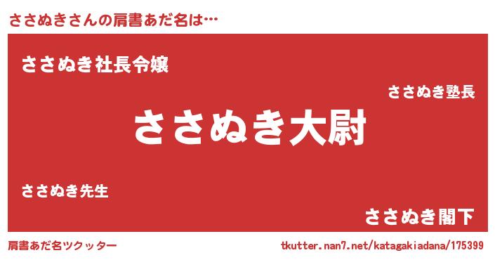 | 男性向けラノベタイトル風あだ名 | 『転生したらささぬきだった件』 |