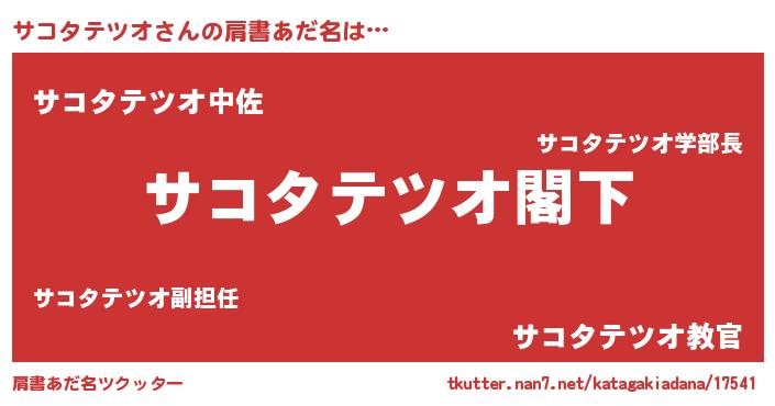 | ヘコむあだ名 | 『サコタテツオ(笑)』『サコにー』 |