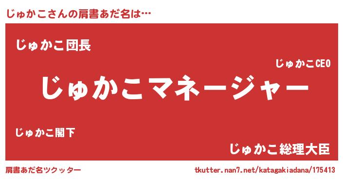 | ヒーロー風カッコイイあだ名 | 『銀牙騎士ジュ』『ウルトラじゅかこマン』 |