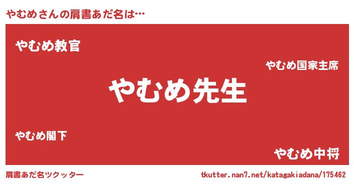 | ヘコむあだ名 | 『やむめ(小並感)』『なまこ酢』 |