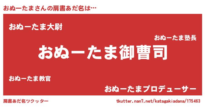 | 男性向けラノベタイトル風あだ名 | 『おぬーたまの憂鬱』 |