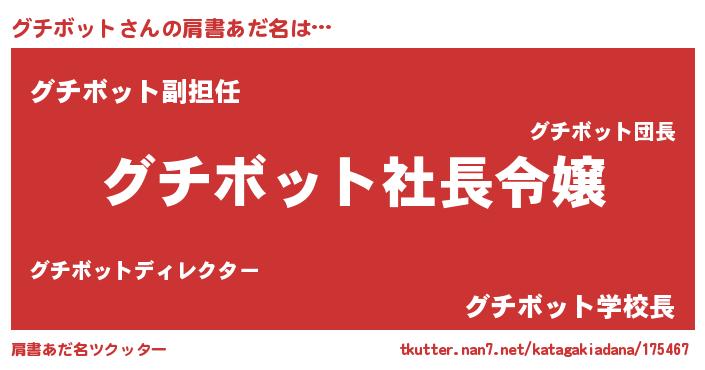 | ヒーロー風カッコイイあだ名 | 『スーパーグチボット』『ネオグチボット』 |