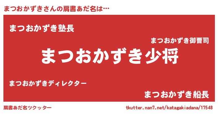 | 女子向けラノベタイトル風あだ名 | 『まつおかずきの玉の輿計画!』 |
