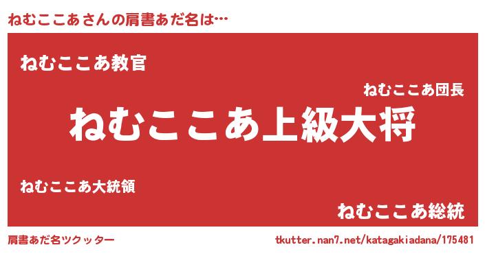 | 男性向けラノベタイトル風あだ名 | 『ねむここあ~年齢イコール彼女いない歴の魔法使い~』 |