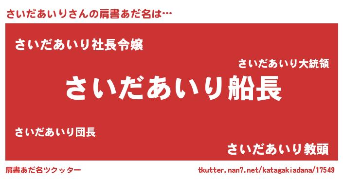| ヘコむあだ名 | 『さいにー』『さいだあいり(苦笑)』 |