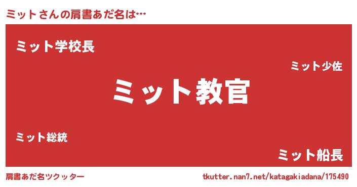 | ヘコむあだ名 | 『ミット(苦笑)』『豆乳』『ミッお』 |