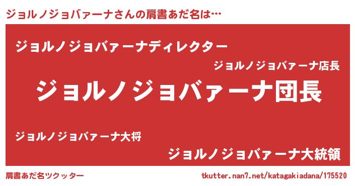 | 男性向けラノベタイトル風あだ名 | 『ジョルノジョバァーナの嫁は女の子じゃないと思った?』 |