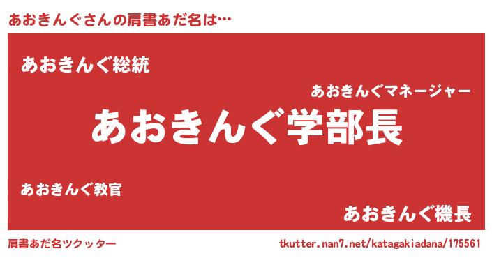 | ヒーロー風カッコイイあだ名 | 『天空の使者あおきんぐ』『仮面アオダー』 |