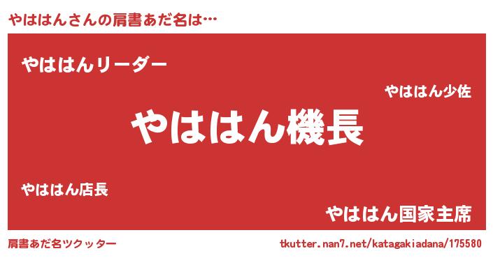 | ヒーロー風カッコイイあだ名 | 『炎刃騎士ヤハ』『ウルトラやははんマン』 |