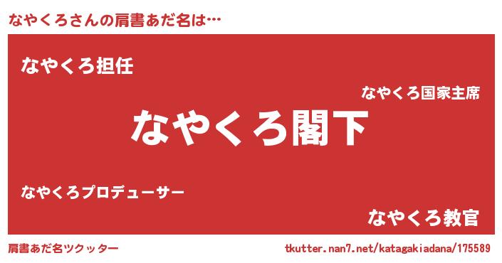 | 意味不明あだ名 | 『自称なやくろ』『永久保存なやくろ』 |