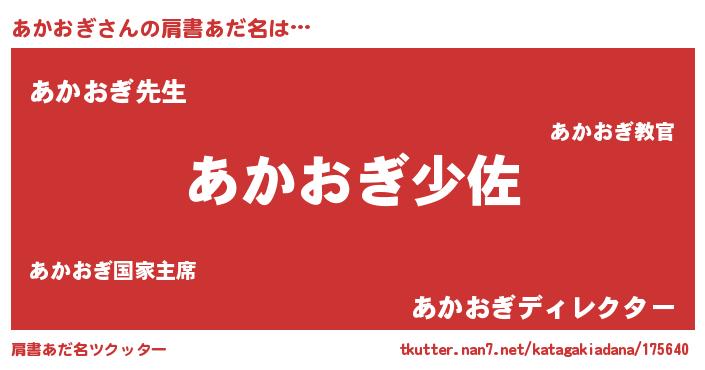 | 男性向けラノベタイトル風あだ名 | 『アカオギスレイヤー』 |