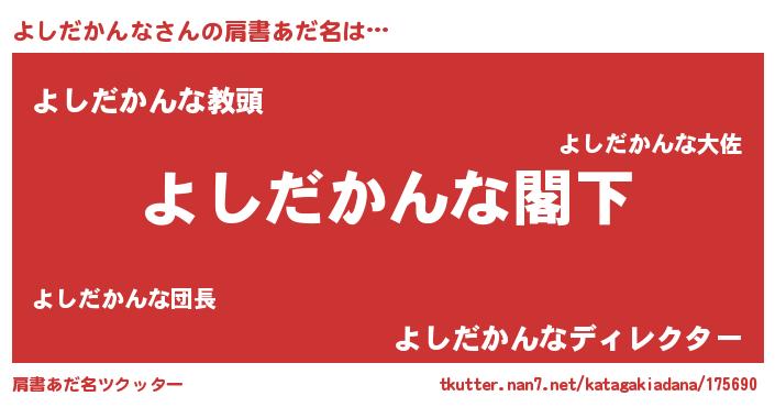 | ヒーロー風カッコイイあだ名 | 『最強戦士ヨシダカンナ』『銀牙騎士ヨシ』 |