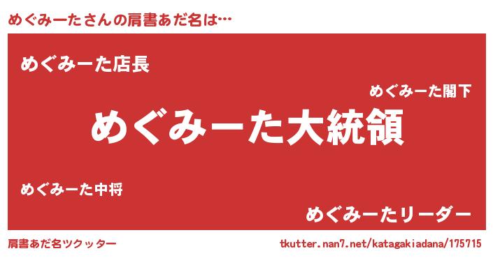 | 意味不明あだ名 | 『めぐみーたフォーエバー』 |