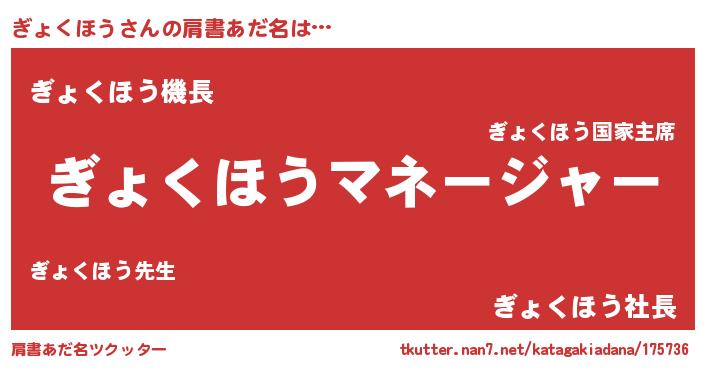 | 男性向けラノベタイトル風あだ名 | 『はたらくぎょくほうさま!』 |
