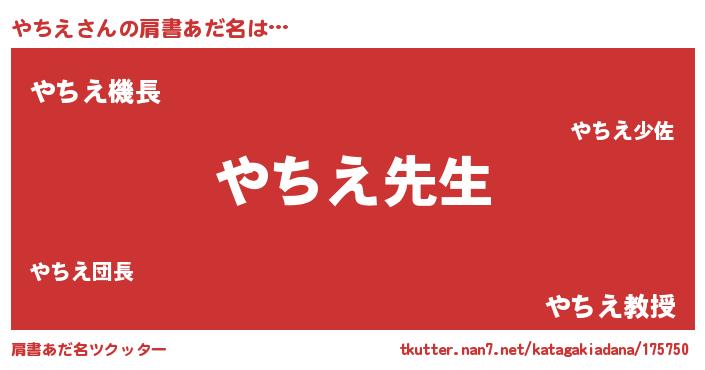 | ヘコむあだ名 | 『やちえ(小並感)』『やちぷりん』 |