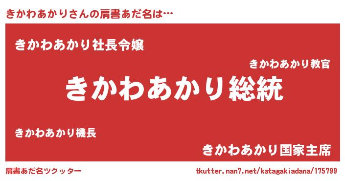 | ヒーロー風カッコイイあだ名 | 『最強戦士キカワアカリ』『仮面キカダー』 |