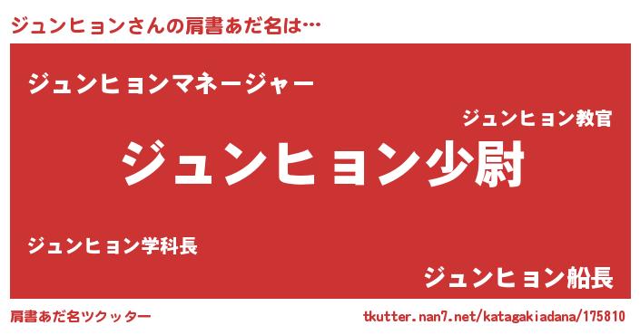 | 男性向けラノベタイトル風あだ名 | 『ジュンヒョンスレイヤー』 |